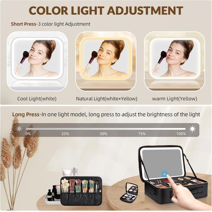 Tas Makeup Lampu / LED 3 Warna Lampu LED Makeupartist Bag MUA Beauty Case Tas Makeup Kosmetik MUA Beauty Case Full Mirr