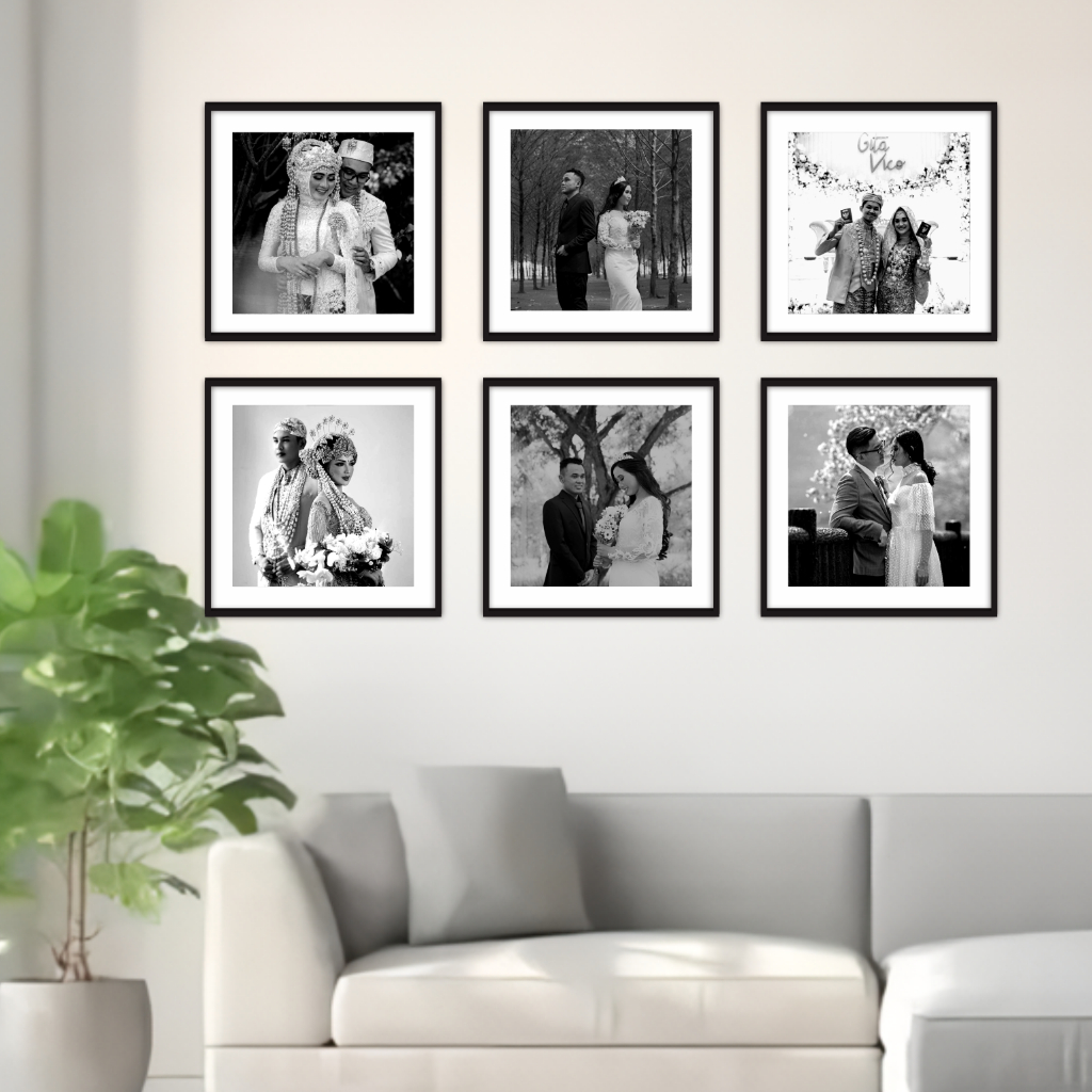 PAKET CETAK FOTO 6PCS + LIST BINGKAI 20X20CM LANGSUNG TEMPEL TANPA PAKU HIASAN DINDING CUSTOM