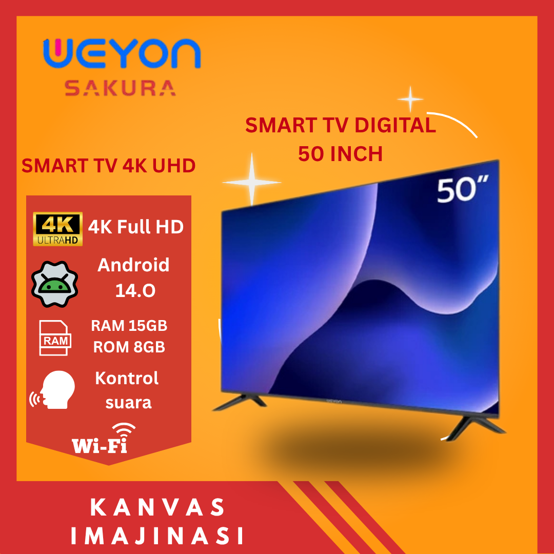 WEYON SMART TV DIGITAL 50 INCH 55 INCH 4K UHD TV ANDROID 11.0 VOICE CONTROL DOLBY AUDIO TELEVISI MURAH TANPA DP