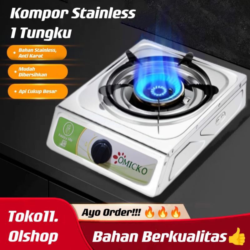 Kompor Gas 1 Tungku / Kompor Stainless 1 Tungku / Kompor Gas OMICKO Anti Karat