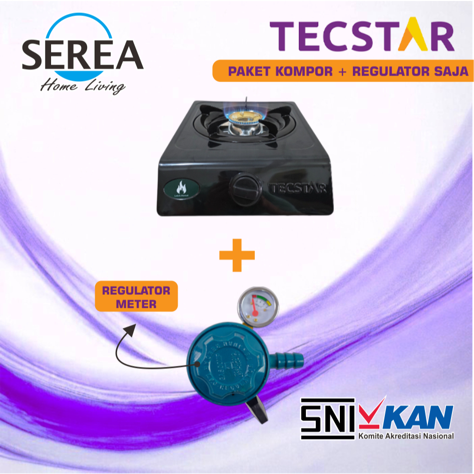 TECSTAR Kompor Gas 1 Tungku Teflon TGS-322SS/Kompor Gas 1 Tungku TECSTAR Ceflon Anti Karat,SNI