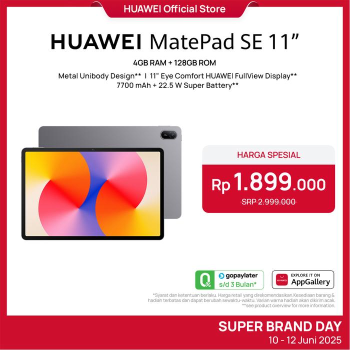 Huawei Matepad Se 11" Tablet [4+128Gb] | Fhd+ Eye Comfort Display | 7700Mah | Metal Unibody - Grey
