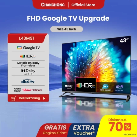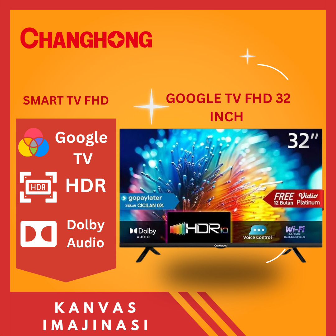 CHANGHONG GOOGLE TV 32 INCH 43 INCH 50 INCH 40 INCH FHD DOLBY AUDIO QLED LED TELEVISI SMART DIGITAL TV MURAH TANPA DP