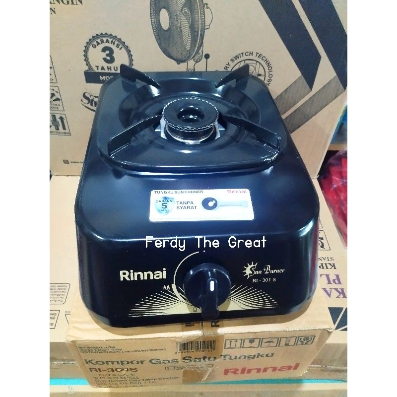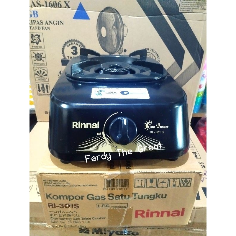 Kompor Gas Rinnai 1 tungku 1 mata hitam teplon 301 S / kompor gas rinnai satu tungku 301s / kompor gas rinnai satu mata