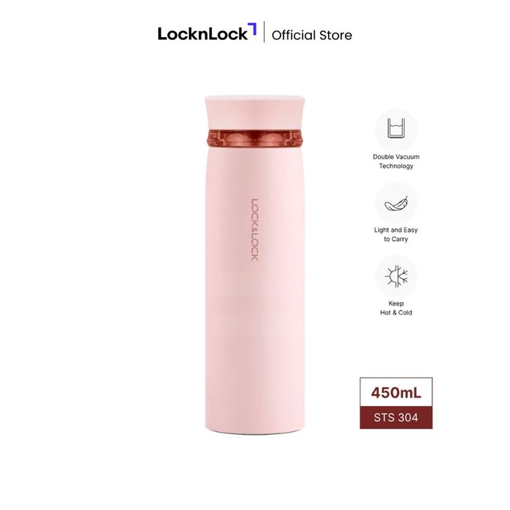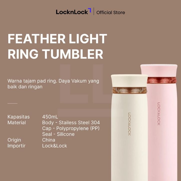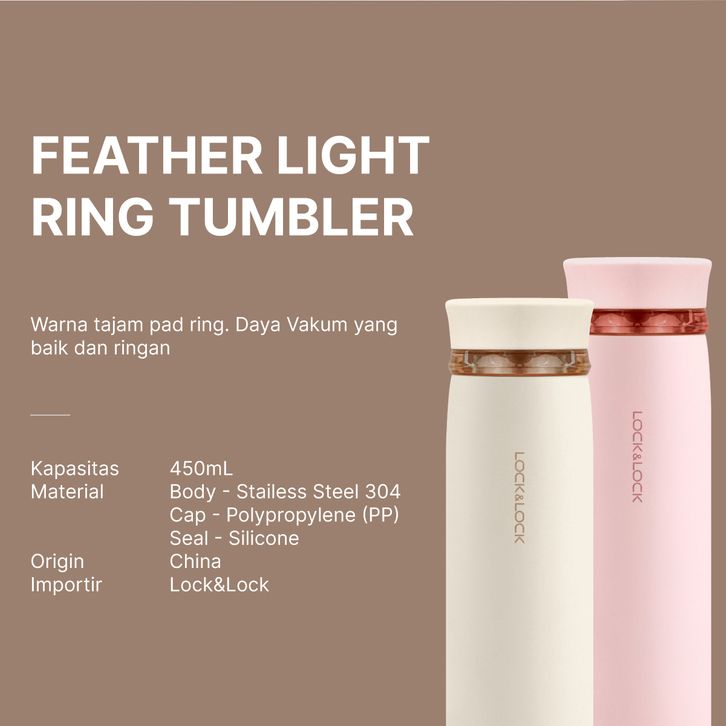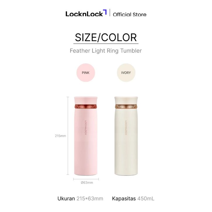Tumbler LocknLock Feather Ring Vacuum Tumbler 450ml Pastel Pink / tumbler stainless tahan dingin dan panas