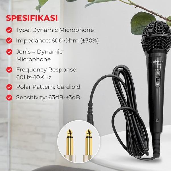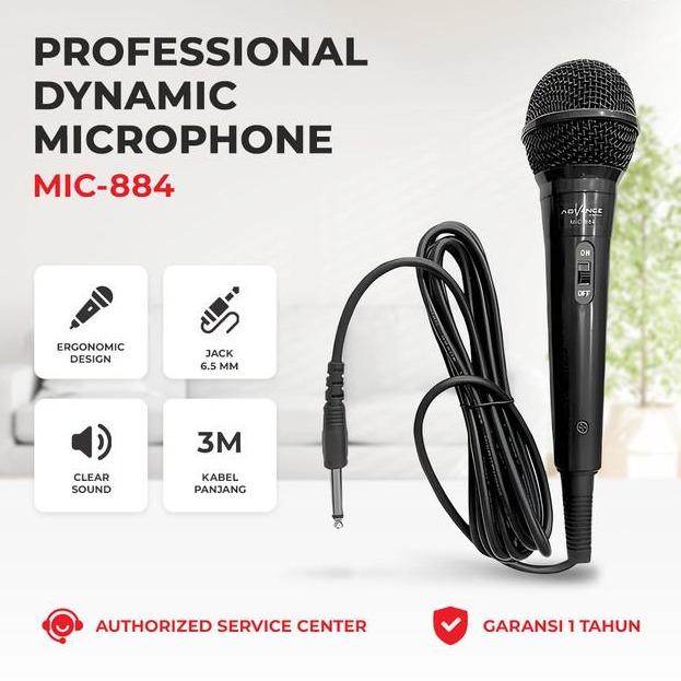 ADVANCE Microphone Mic-884 Mic Karaoke Profesional Dynamic Mic Kabel - JACK-6.5MM Garansi Resmi & 100% Ori