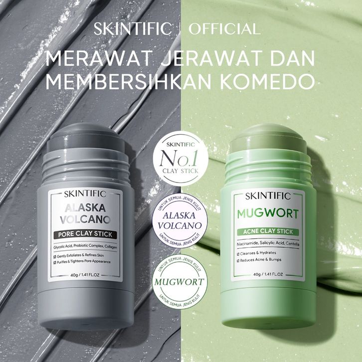 SKINTIFIC - Mugwort Acne Clay Stick + Alaska Clay Stick | Clay Stick Combo Masker Wajah Komedo Acner Eksfoliasi Wajah G