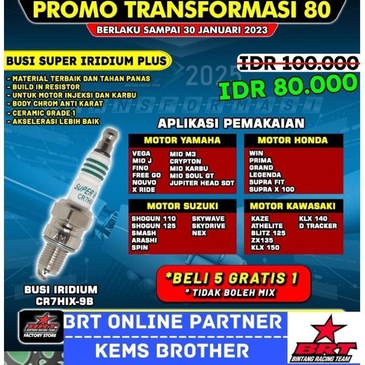 BUSI BRT SUPER IRIDIUM BISA UNTUK SEMUA MOTOR HONDA YAMAHA SUZUKI KAWASAKI BUSI IRIDIUM PLUS VIXION MX KING VARIO 160 X