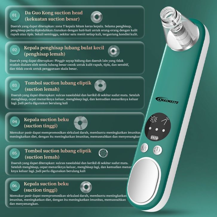 MAIMIETE Alat Pembersih Komedo Penyedot Komedo Vacuum Cleaner Elektrik -Jerawat Blackhead Remover Alat Pijat Wajah Al