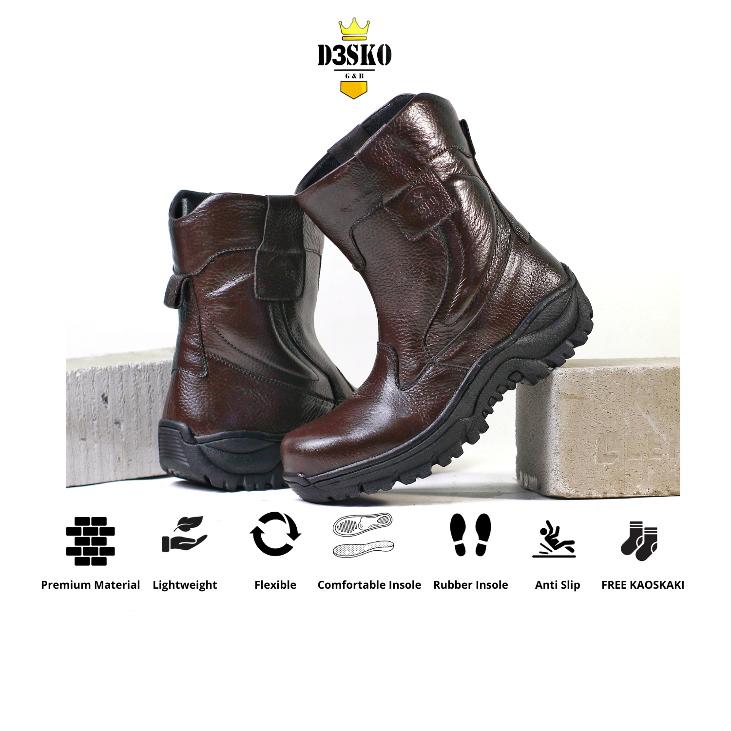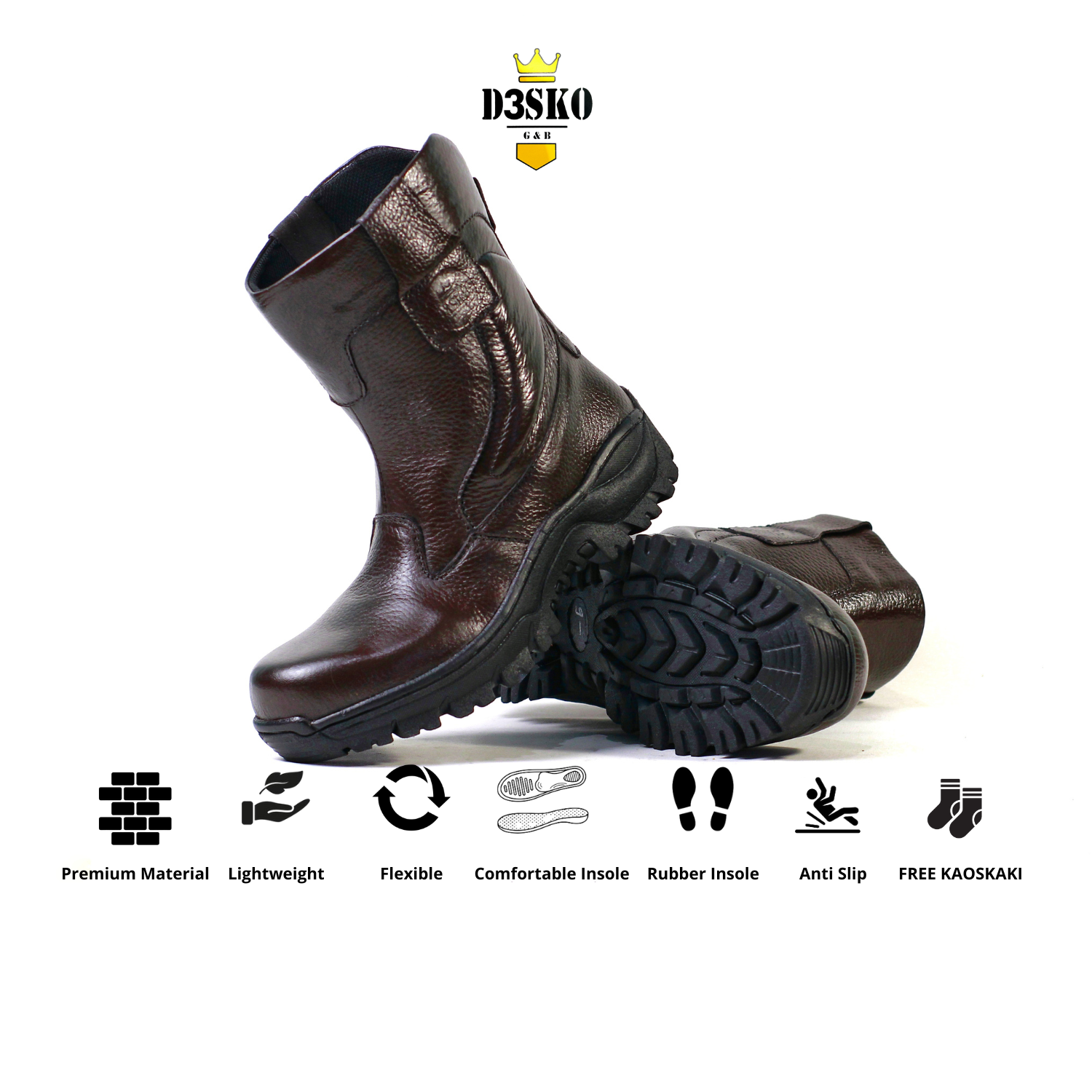 Sepatu Safety Pria D3SKO G&B Sepatu Boots Safety D3sko Athena Safety Ujung Besi Kerja Proyek Lapangan Coklat