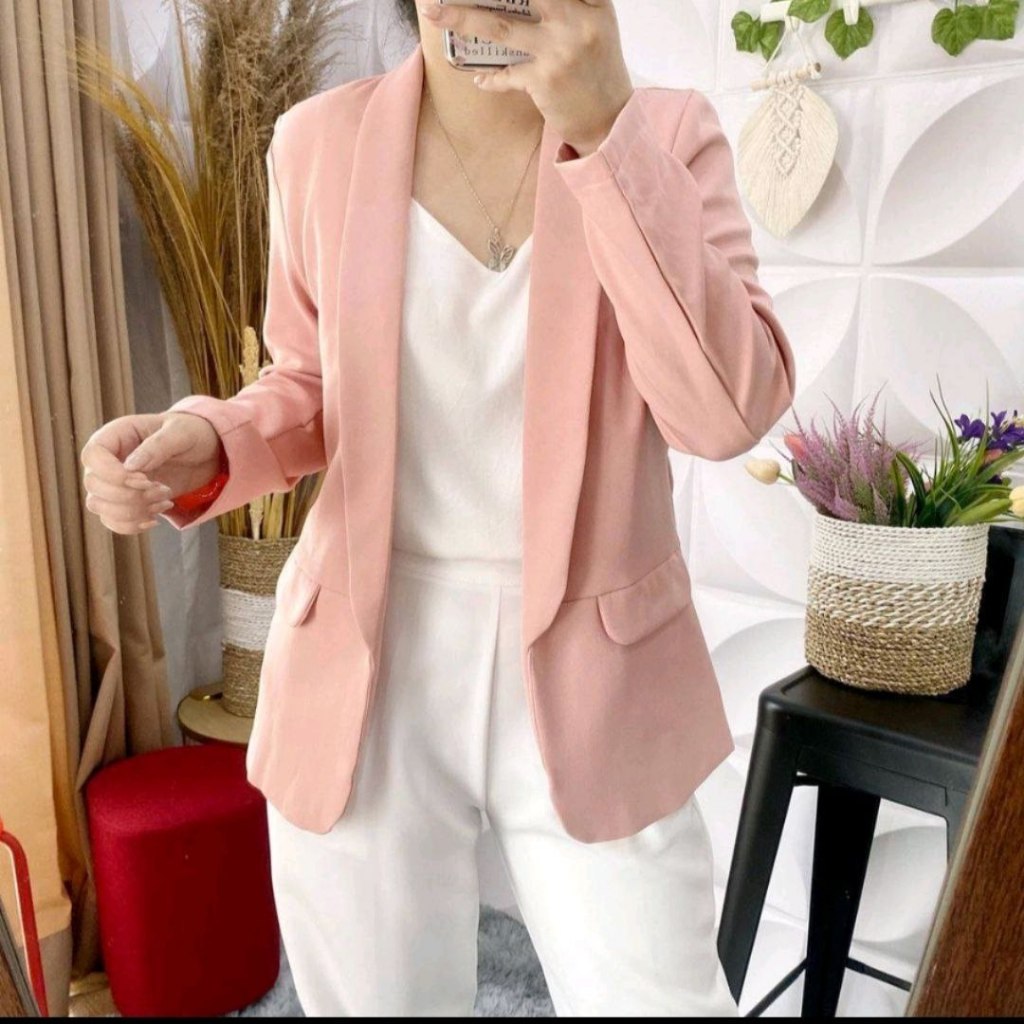 HAWEKINS BLAZER WANITA KERAH LURUS ELEVATED VIE BABY PINK