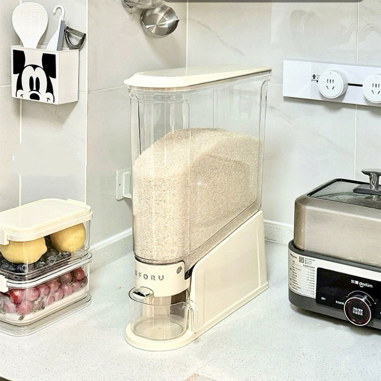 99KHOME Big Rice Bucket Tempat Beras Otomatis Wadah Beras dengan Tutup Takaran K1228