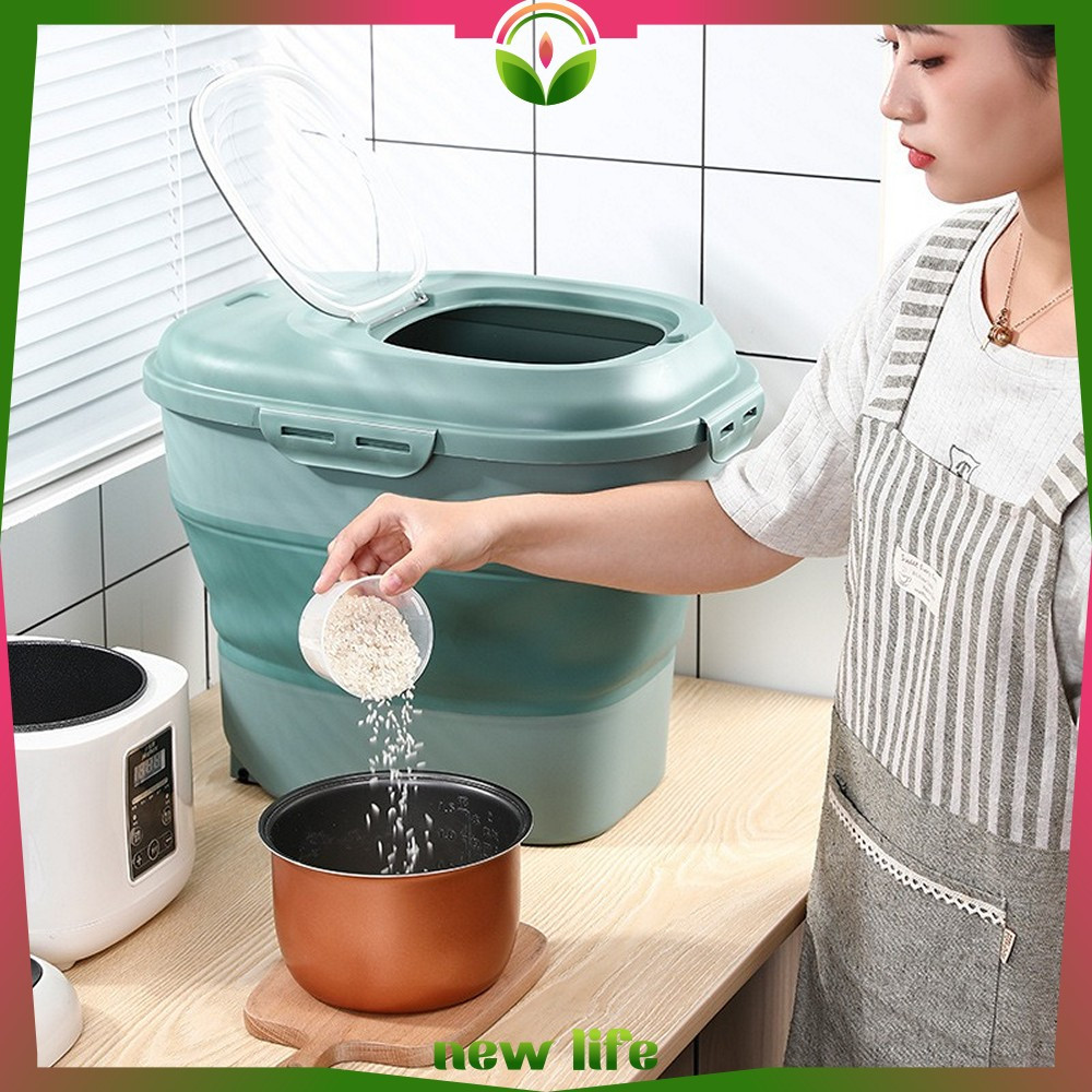 Tempat Penyimpanan Beras Lipat 25kg / Dispenser Beras Free Cangkir / Foldable Rice Container Storage Newlife C259