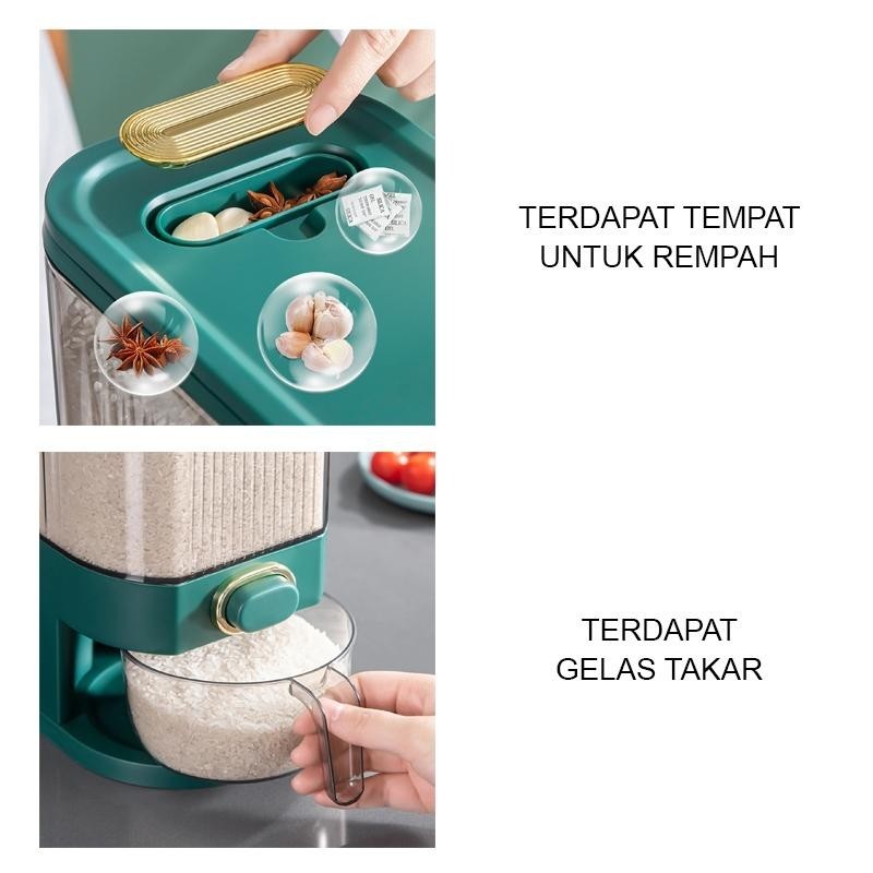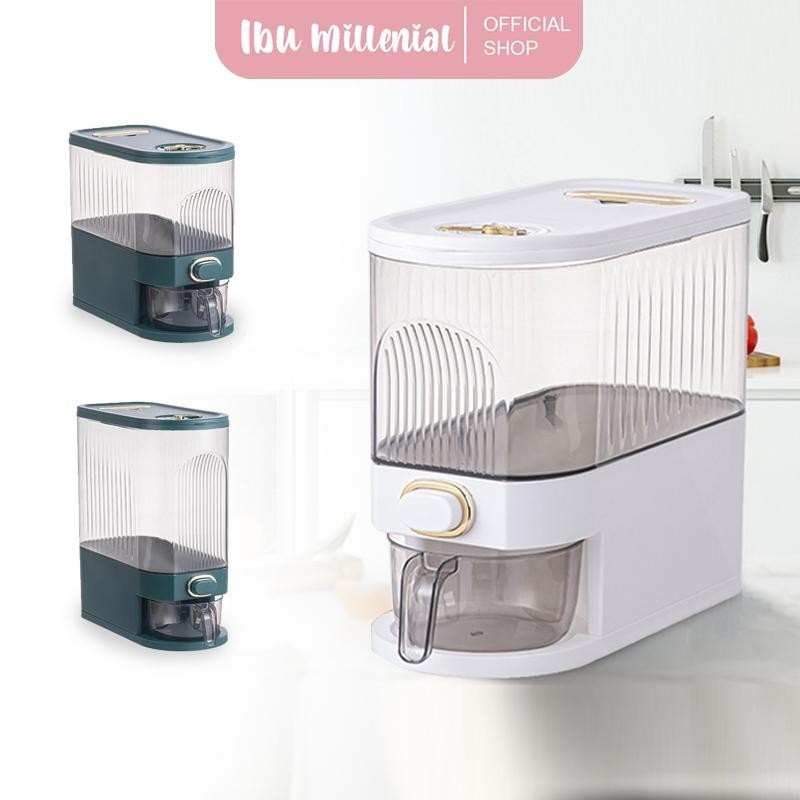 IbuMillenial Dispenser Beras Otomatis Kotak Penyimpanan Beras Makanan Kering untuk Makanan Hewan Bening