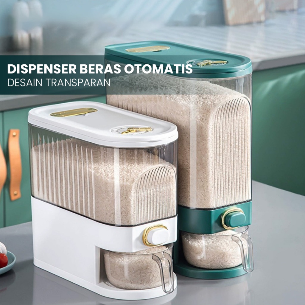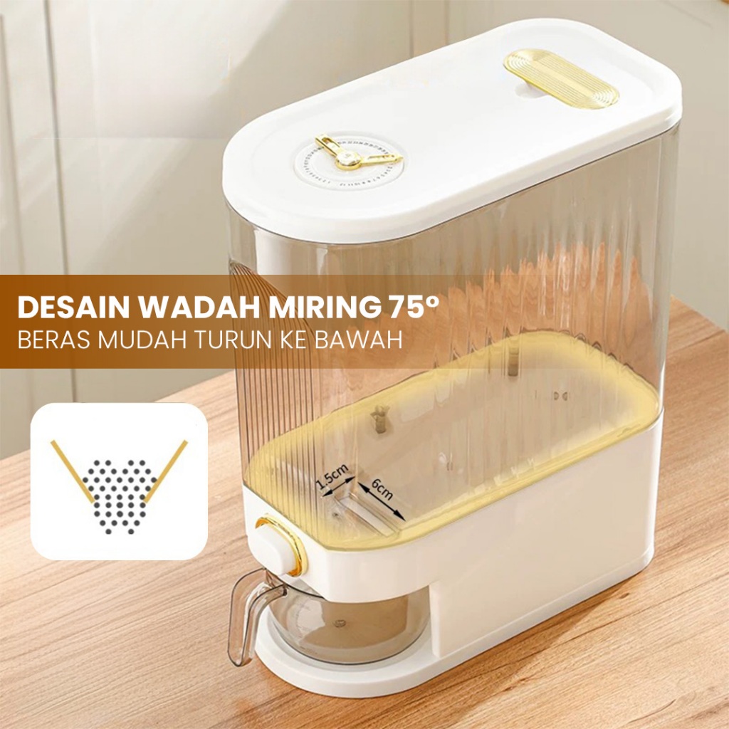 LIVING MALL Dispenser Beras Otomatis E25-E26 Tempat Penyimpanan Beras Anti Kutu GRATIS Mangkok Cuci Beras