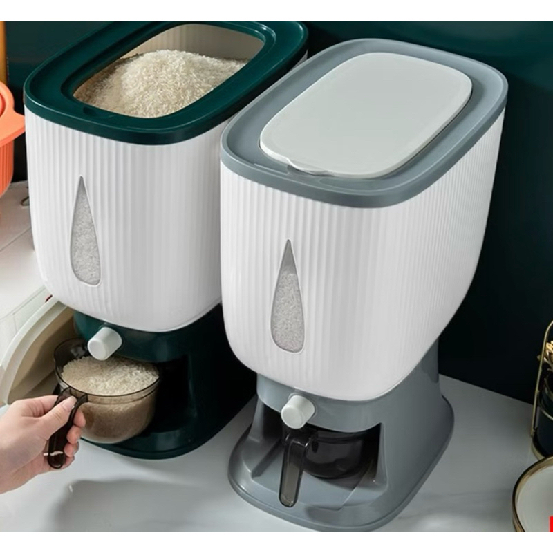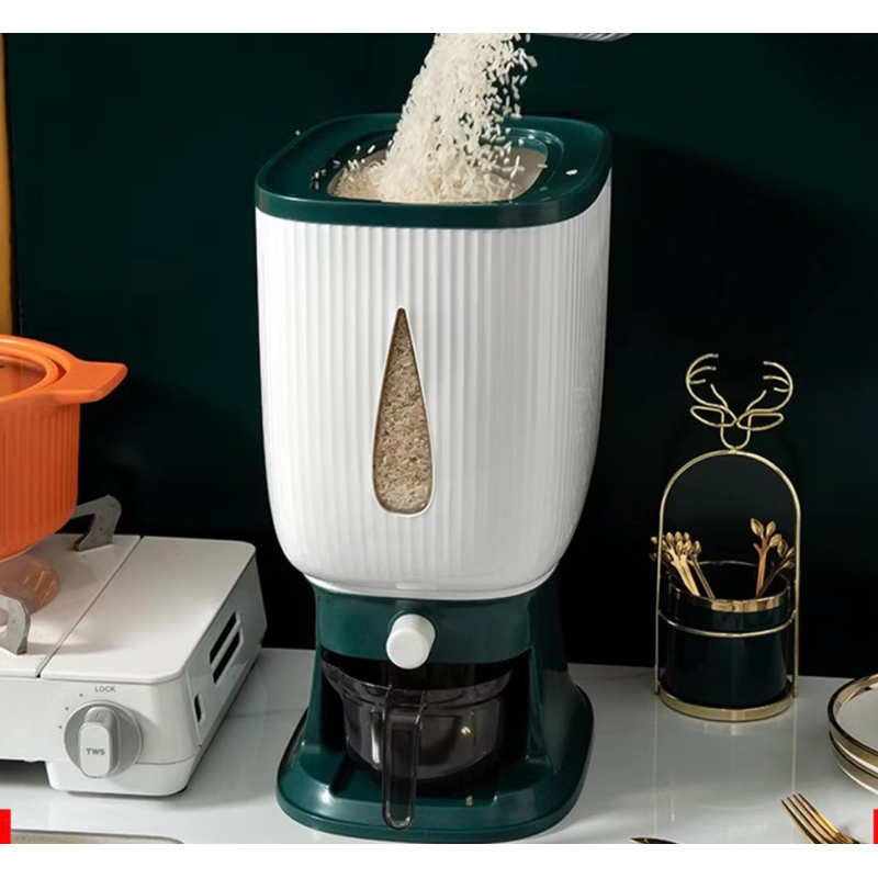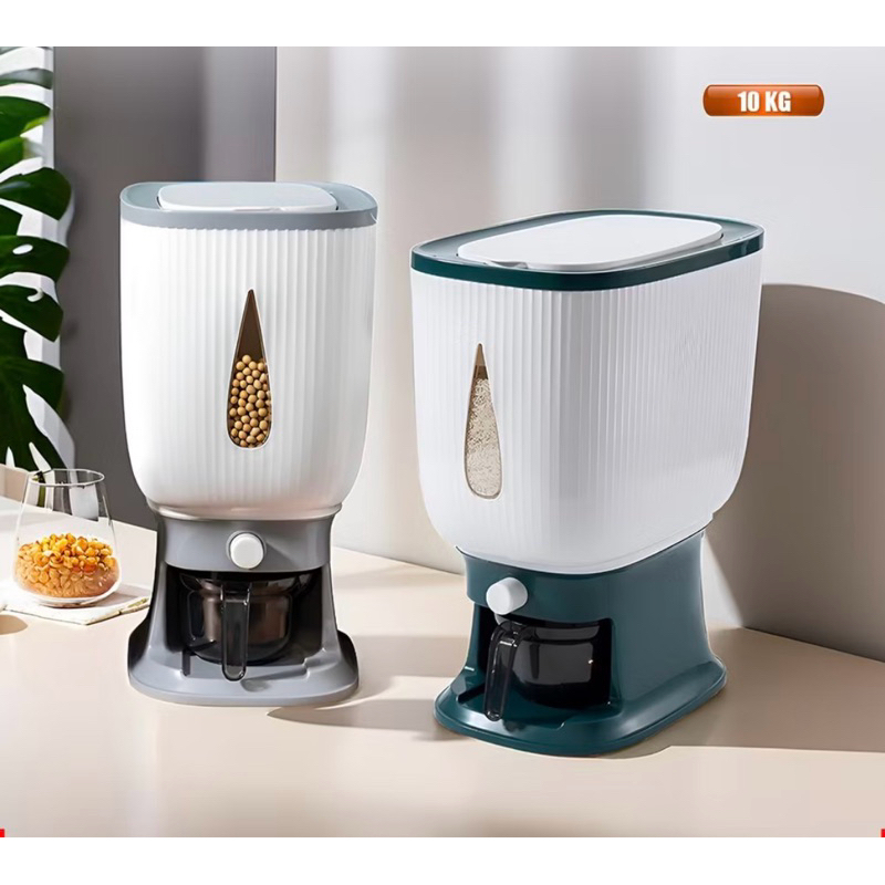 Dispenser Beras 10 KG Rice Dispenser Tempat Wadah Penyimpanan Beras Otomatis Dengan Wadah Pengering Beras Serbaa