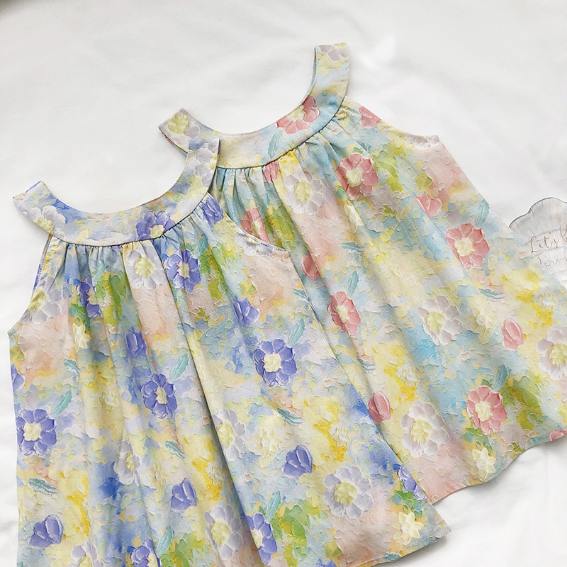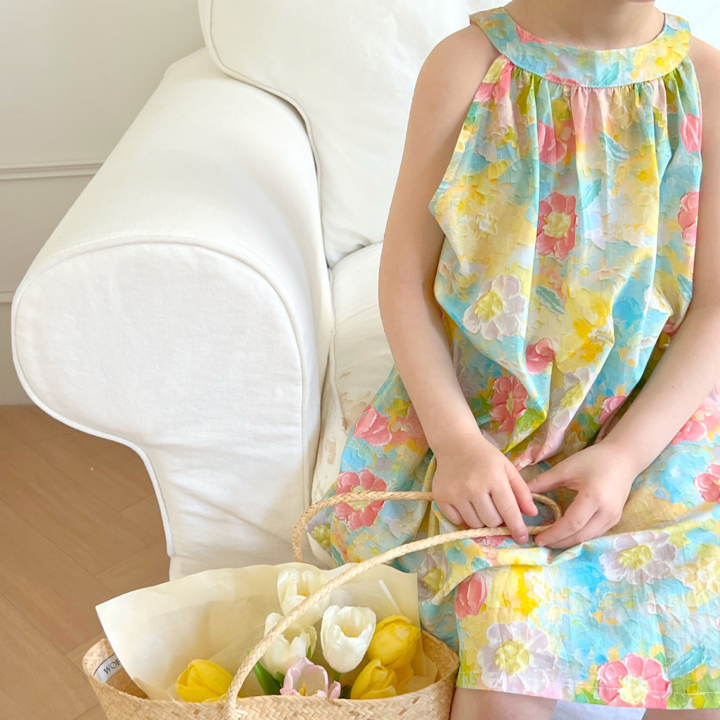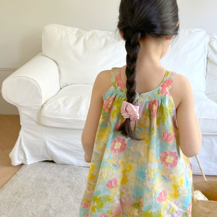 Haasya Kids 2-7 Tahun Pakaian Anak-anak Usia Gaun Tanpa Lengan Anak Perempuan Gaun Putri Suspender Cetak Lukisan Cat Min