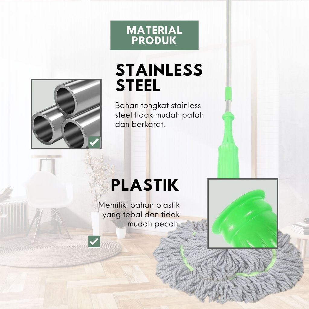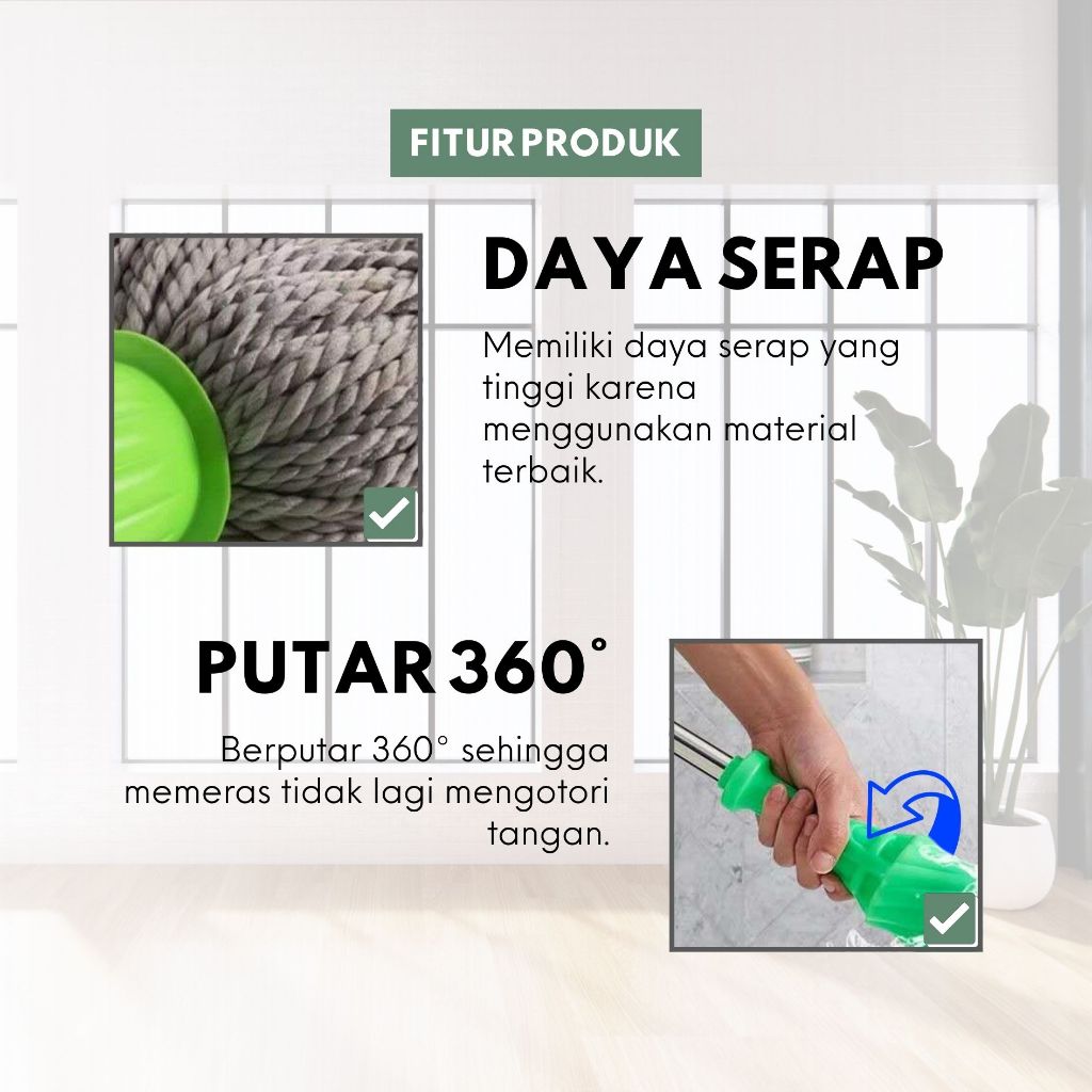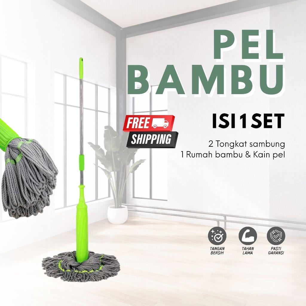 Alat Dehidrasi 1 Detik Pel Perasan Otomatis Dorong Bentuk Bambu Pel Lantai Efisien Putar Twist Mop