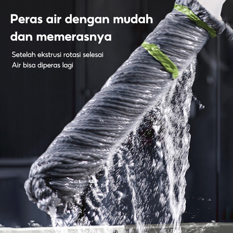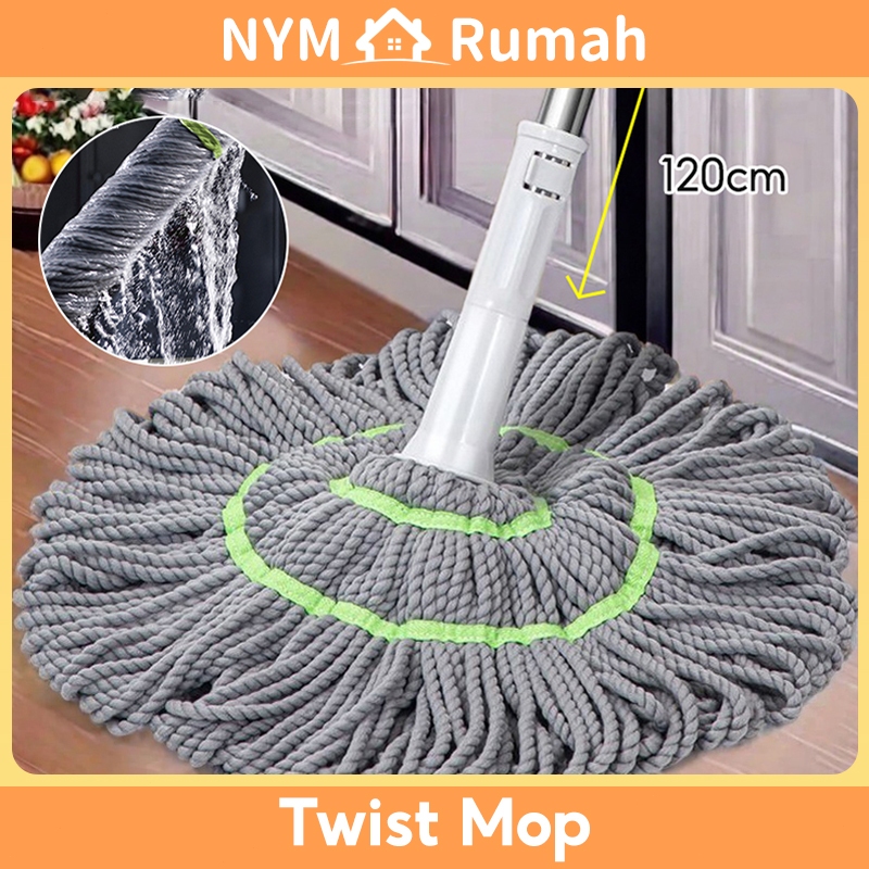NYM Rumah Alat Pel Lantai Putar Otomatis Daya Serap Tinggi Twist Mop Microfiber Lepas Pasang Kain Peras Putar Lap Pember