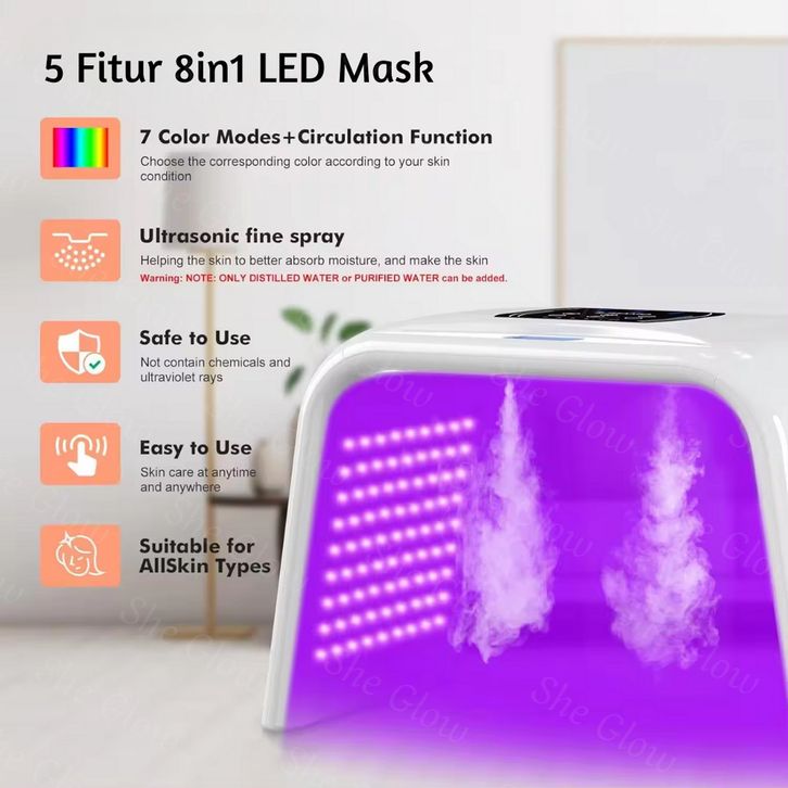 masker wajah She Glow GARANSI 1 TAHUN 8in1 Masker LED PDT Nano Ganda Steam Light Omega 7 Warna Lampu Spa untuk Perawata
