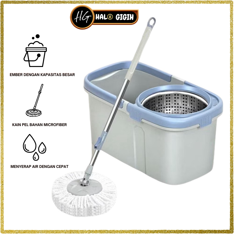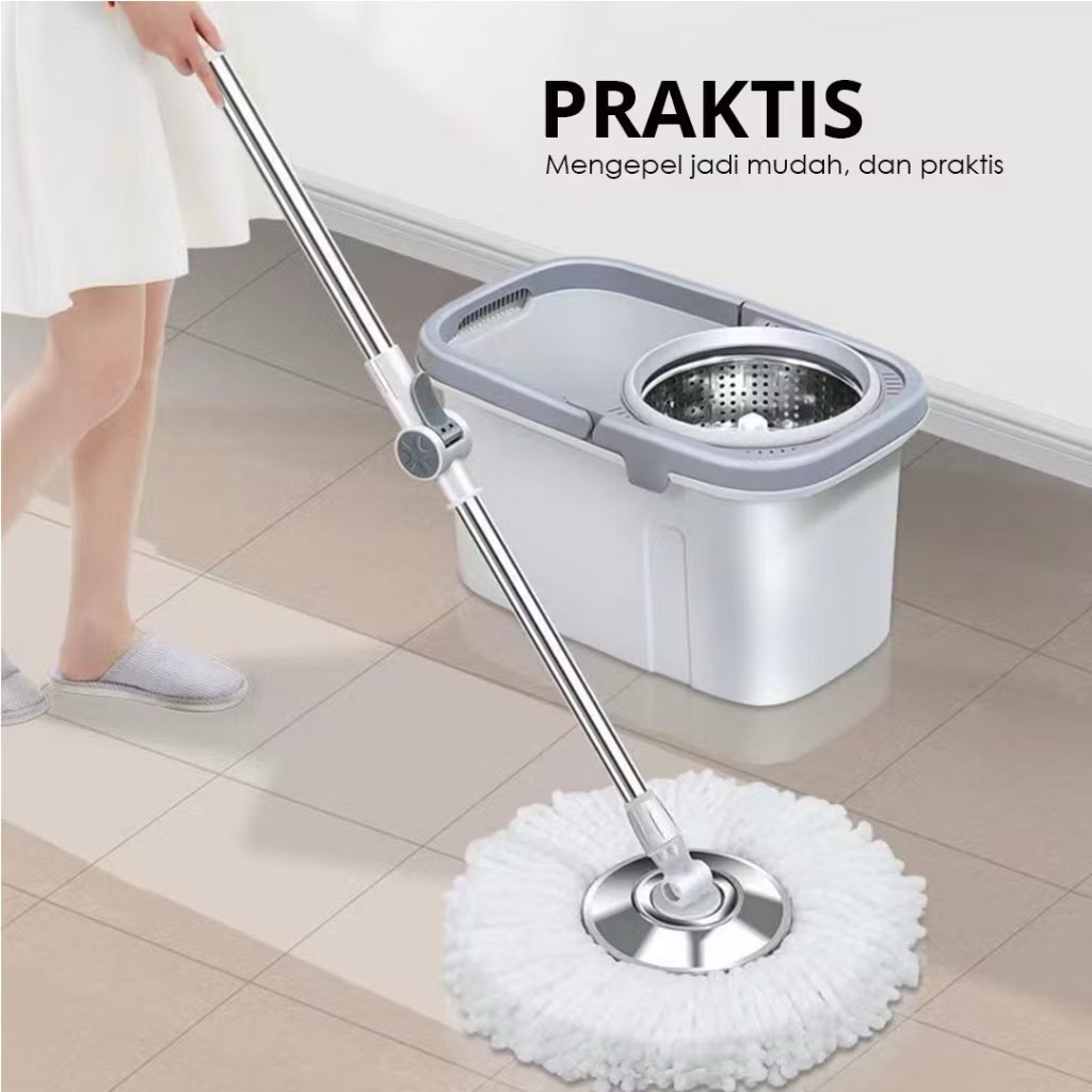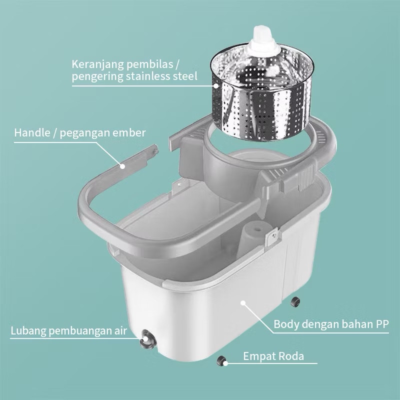 Alat Pel Lantai Dengan Ember Peras Stainless Spin Mop Alat Pel Lantai 360 Derajat