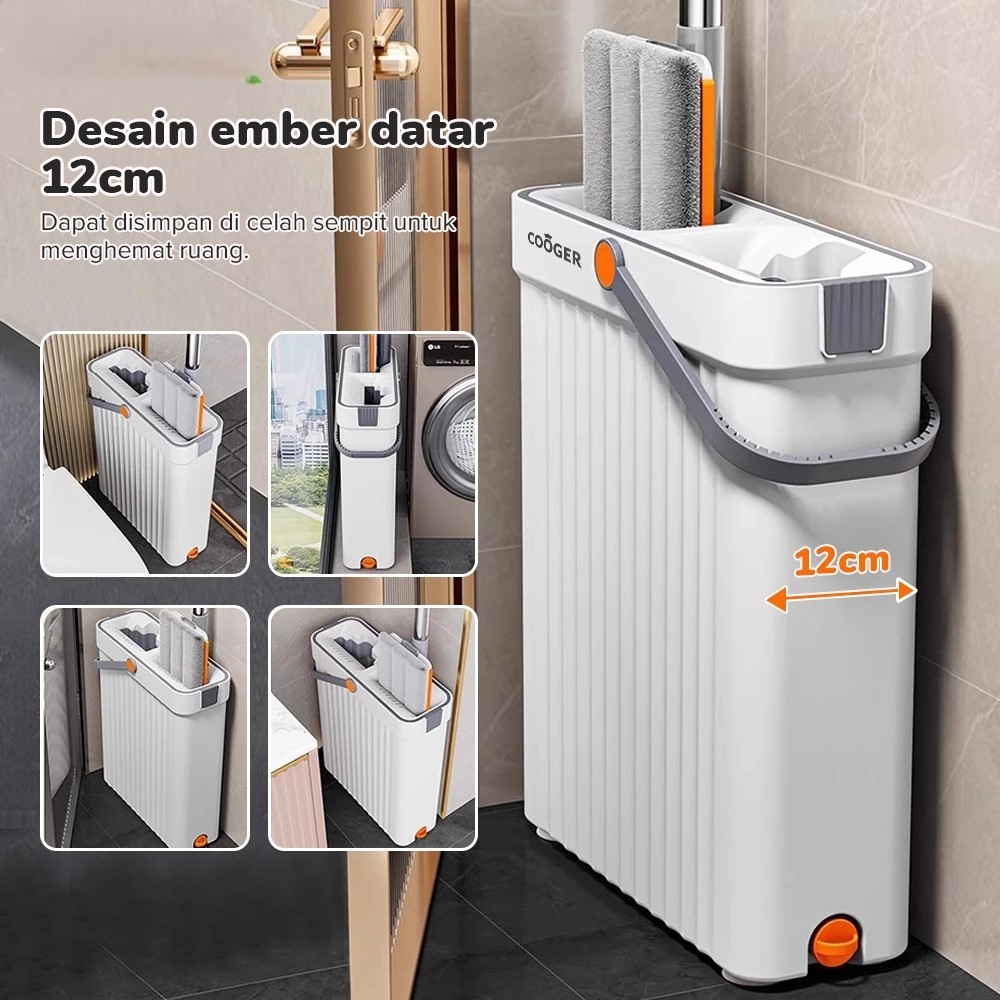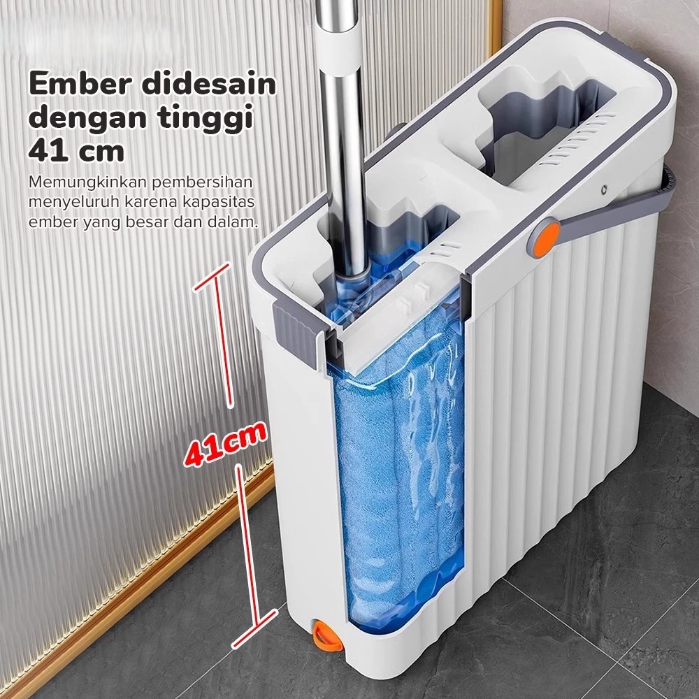 Pel Lantai 2-in-1 Ember Sekat Otomatis | Mop Putar 360° Cuci & Peras Tanpa Basah | Dual Bucket, Anti Tumpah, Stainless S
