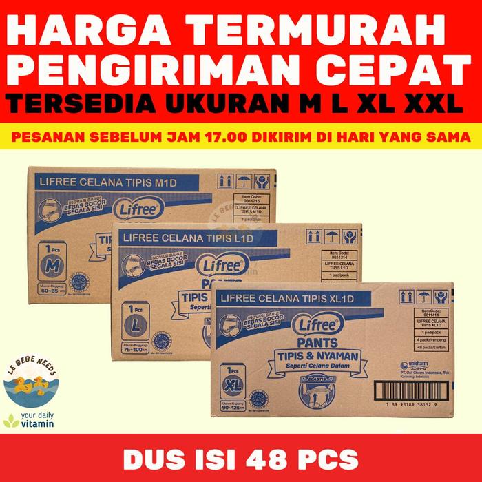 Lifree Popok Celana Dewasa Dus Isi 48 Pcs - Lifree Popok Celana Ukuran M L Xl Xxl Isi 48 Renceng - Popok Orang Tua - M