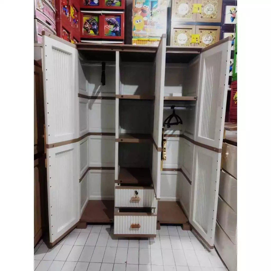 OLYMPLAST OTC LUXURY 3 PINTU LEMARI PAKAIAN PLASTIK PUTIH CERMIN LAMPU LED