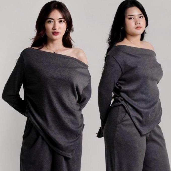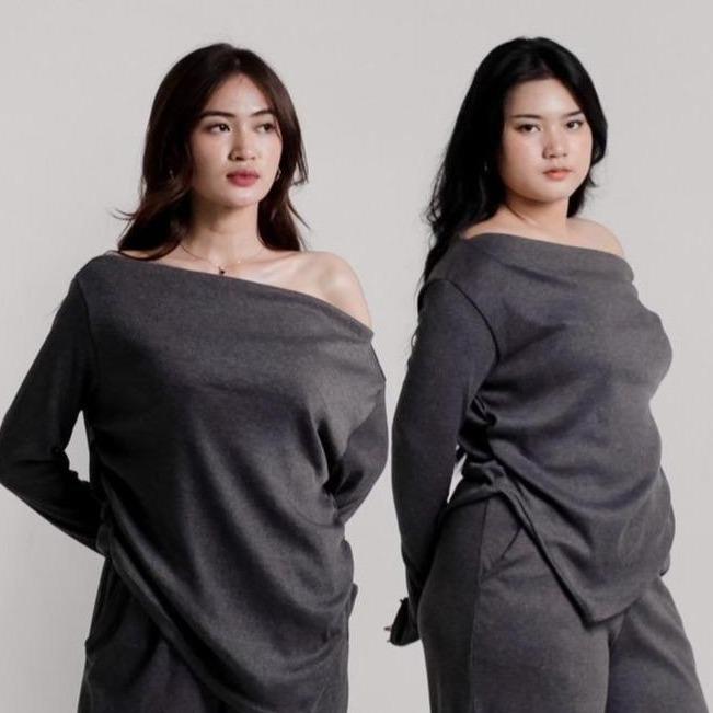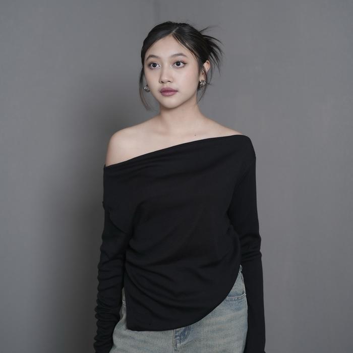 ELFO | Elvi Top Atasan Sabrina Miring Rib Knit Premium