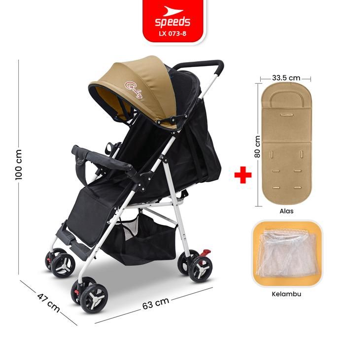 SPEEDS Stroller Anak Premium Bayi Newborn Fitur Baby Perlengkapan Kursi Stroller Roda - 073-1 - 8 KHAKI