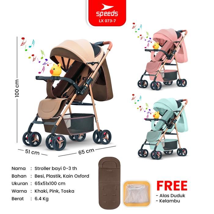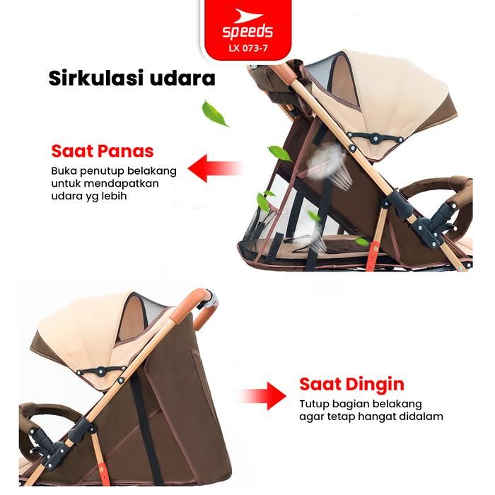 SPEEDS Stroller Kereta Dorong Anak Fitur Anti Panas Premium Perlengkapan Roda Bayi Portabel Kelambu X 073-7 - 10 MERAH