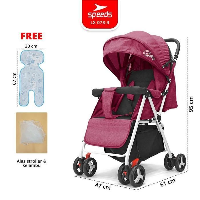 SPEEDS Stroller Anak 2 Mode Fitur Premium Lengkap Teduh Perlengkapan Roda - Stroller LX 073-10 - 3 MERAH