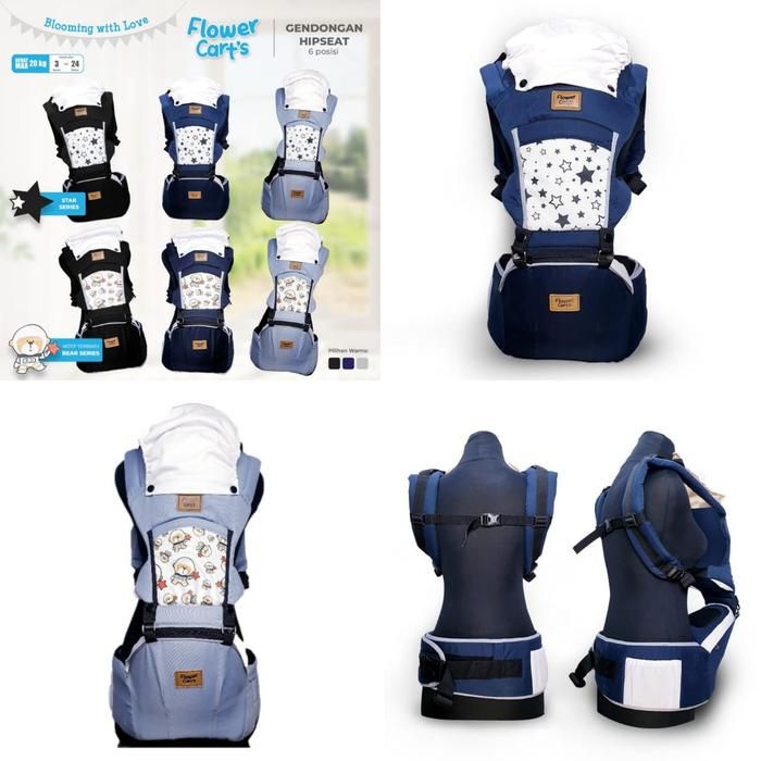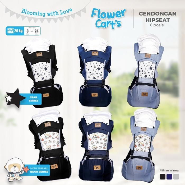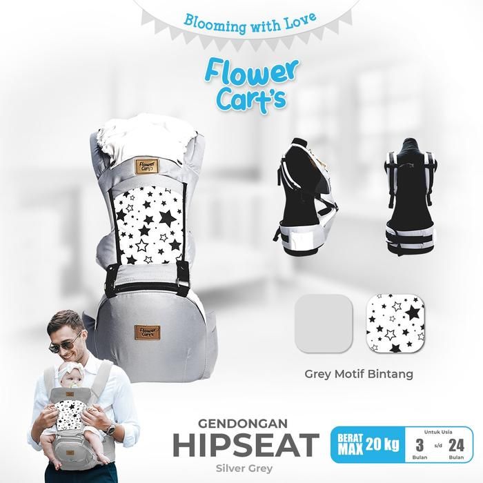 MOMS_ FLOWER CART'S Hipseat Carrier Gendongan Bayi 6 posisi STAR / Bear flower gendong - GREY STAR FL