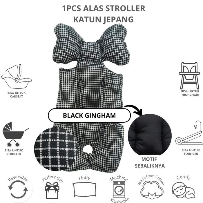 Alas STROLLER PAD KATUN JEPANG stroler Akachan kereta dorong seatpad bayi empuk spad - JP - BLACK GINGHAM