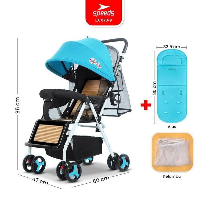 SPEEDS Stroller Anak 2 Mode Fitur Premium Lengkap Teduh Perlengkapan Roda - Stroller LX 073-10 - 9 BIRU