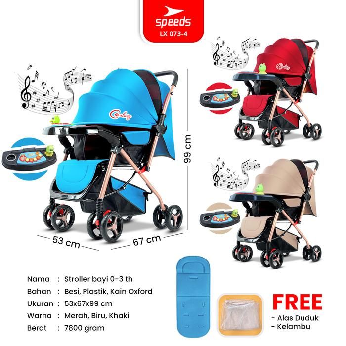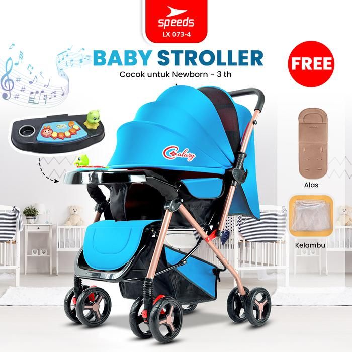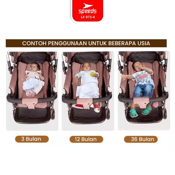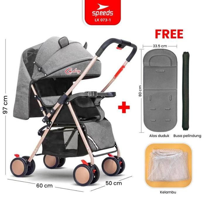 SPEEDS Stroller Anak Kereta Dorong Bayi Portabel Premium Perlengkapan Roda Newborn Baby 2 - LX 073-4 Kursi - 1 ABU