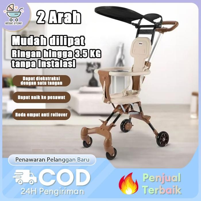 Magic Stroller Baby 2 Way Travel Lightweight Foldable bayi Roda 4 Cabin Newborn - KHAKI+ALAS+ATAP
