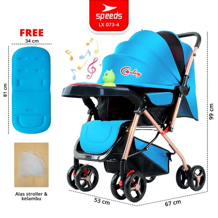 SPEEDS Stroller Kereta Dorong Anak Fitur Anti Panas Premium Perlengkapan Roda Bayi Portabel Kelambu X 073-7 - 4 BIRU