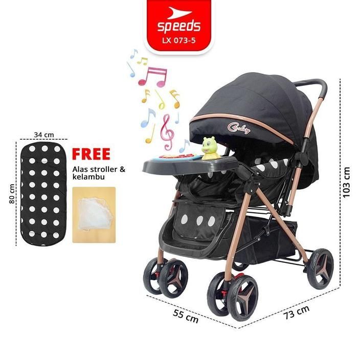 SPEEDS Stroller Anak 2 Mode Fitur Premium Kereta Perlengkapan Roda Dorong Bayi Portabel - LX 073-10 - 5 HITAM