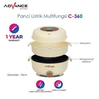 ADVANCE Panci Listrik Elektrik C-360 Multifungsi Warmer Steamer Cooker 26 Cm - Beige Garansi Resmi 100% ORI