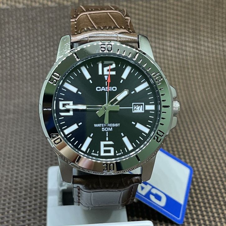 MTP‑VD01L series Original – Jam Tangan Pria Kulit Analog & Tanggal