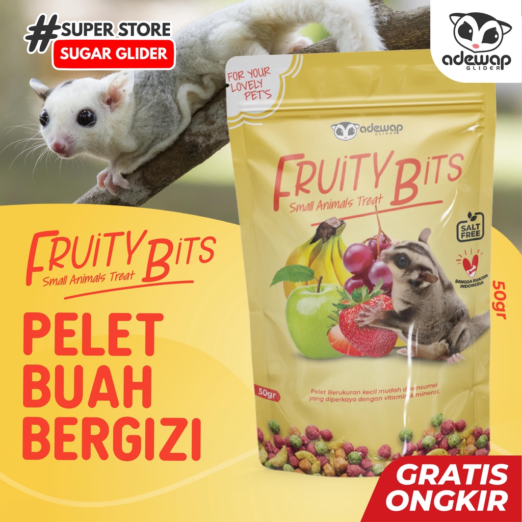 ADEWAP GLIDER Fruity Bits Pelet Buah Instan Bernutrisi Dry Food Fruit Makanan Camilan Sugar Glider