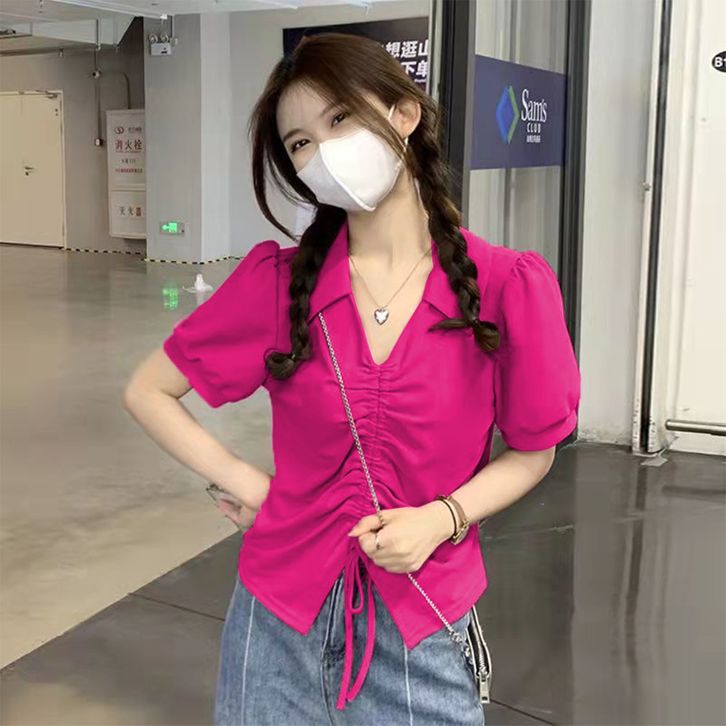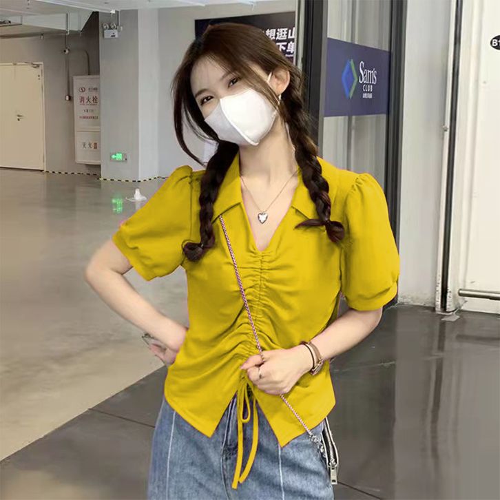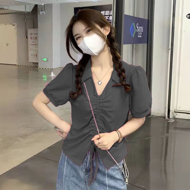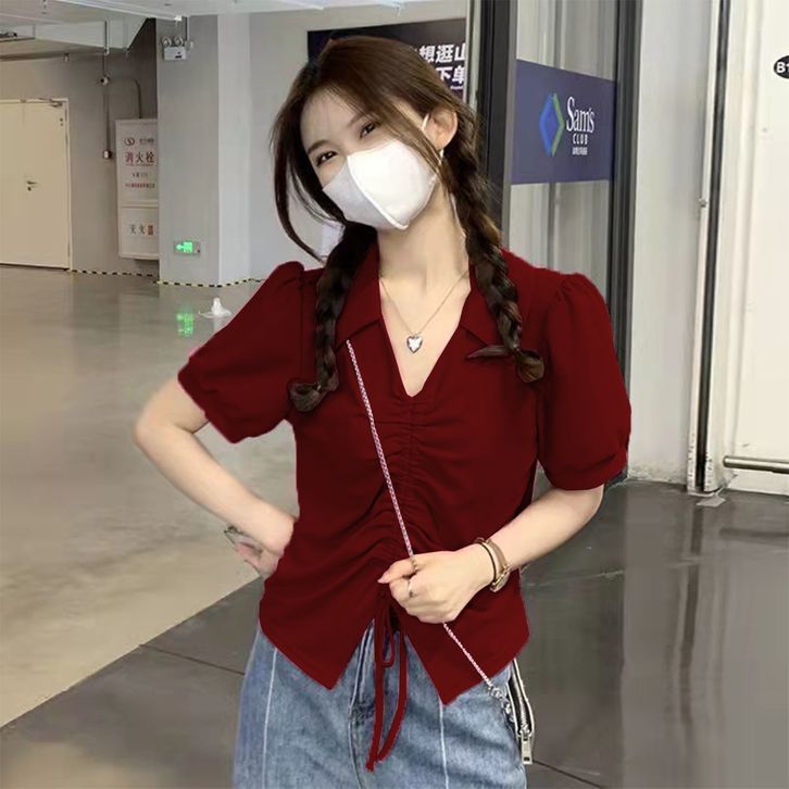 Crop Top Wanita Lengan Pendek Atasan Kaos Wanita Tali Serut Terbaru 8010