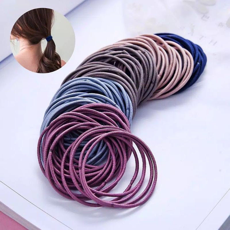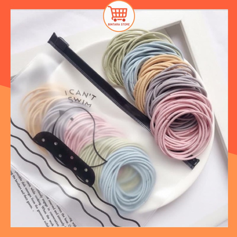 Ikat Rambut Korea Isi 100pcs Import Free Pouch Karet Warna Warni Hitam Polos Premium