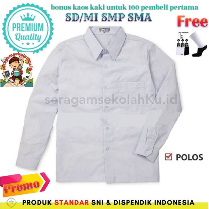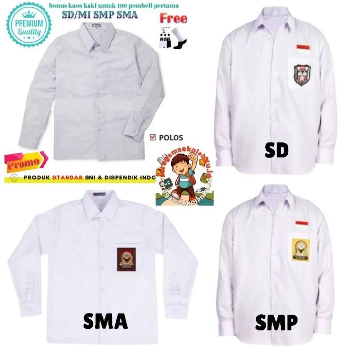Seragam Sekolah SD MI SMP SMA Lengan Pendek Lengan Panjang Putih Polos Kemeja Seragam Anak Sekolah Laki-Laki Dan