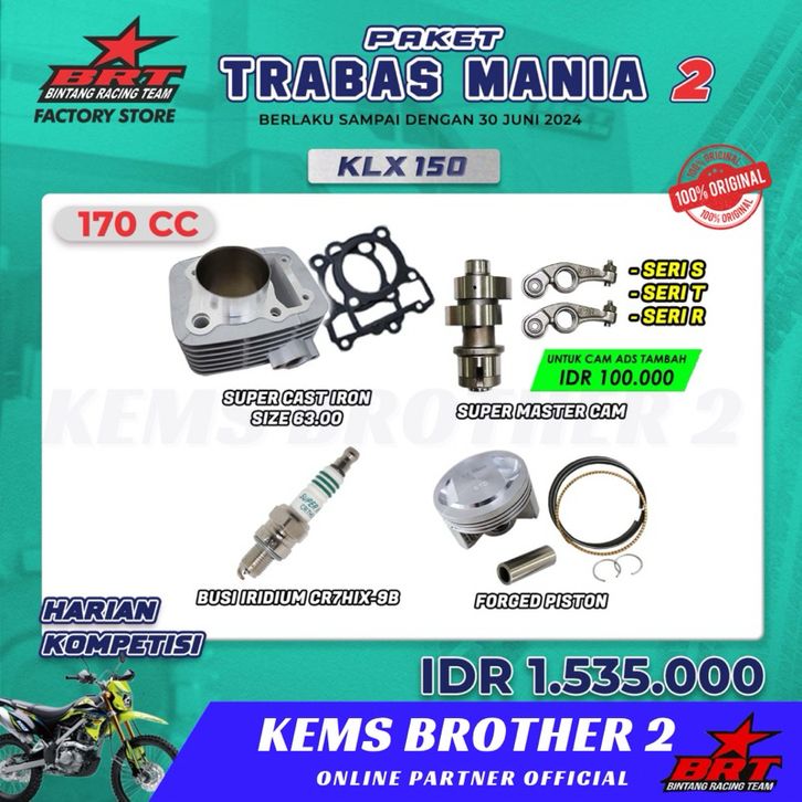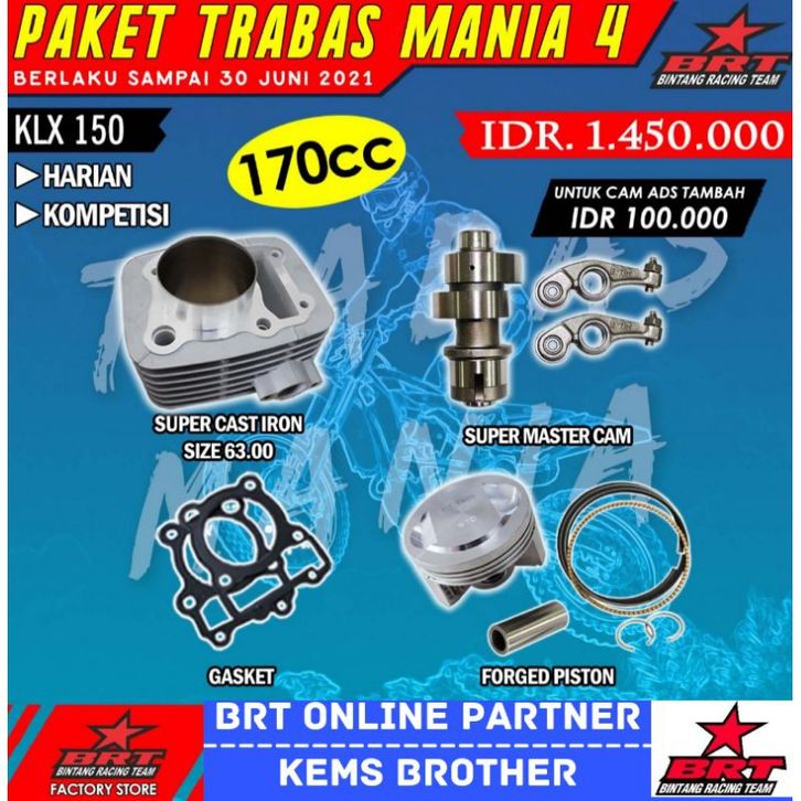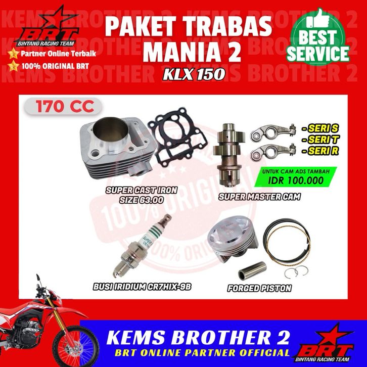Paket Bore Up KLX BRT Original 100% Mania 2 Blok, Piston Kit, Noken As, Rocker Arm, Busi BRT