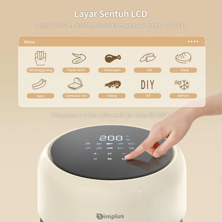 Air Fryer Penggorengan Udara Kapasitas 3.5L 360° Panoramic Window Layar Sentuh Multifungsi