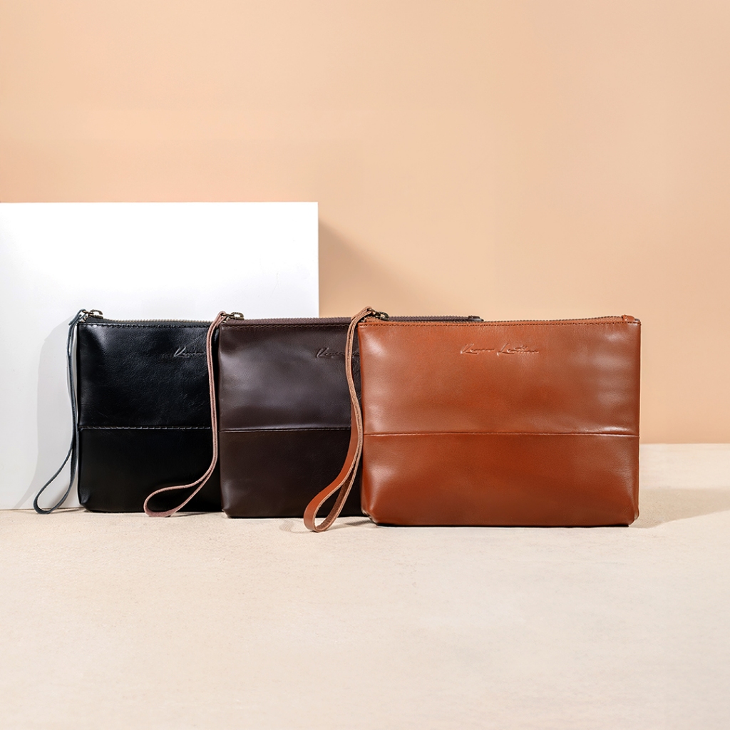KENES LEATHER CLUTCH TAS TANGAN UNISEX KULIT ASLI NATALIE PULLUP - FREE GRAFIR NAMA