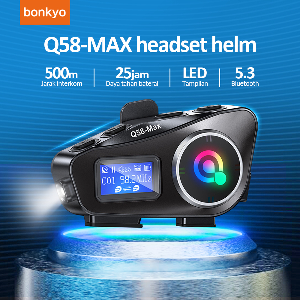 Bonkyo Q58MAX helm headset Bluetooth layar LCD headset helm interkom dua orang
