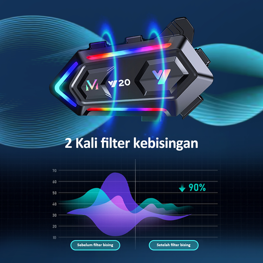 Bonkyo Y20 intercom Helm Sepeda Motor Bluetooth Headset Hands Free Call Kit IPX7 Tahan Air Nirkabel Stereo Headset deng